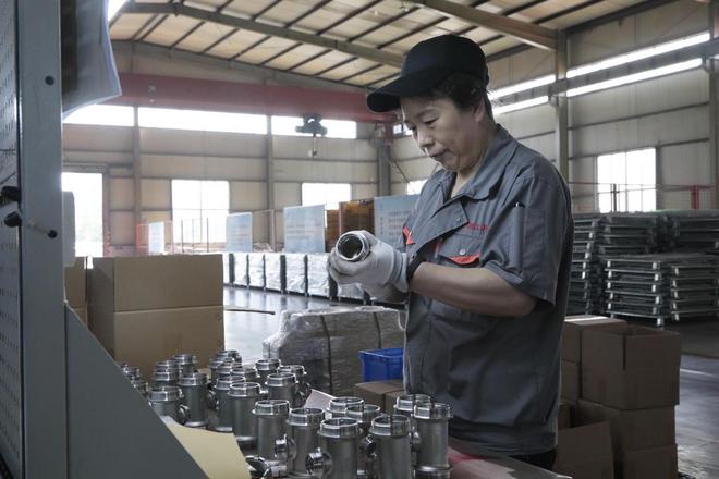 在位于新泰市果都镇的山东森宇精工有限公司,同样一片繁忙景象。在该公司精密配件机加工车间,一批出口海外市场的配件正在紧锣密鼓地生产中,一件件精密配件经由终检工序工作人员刘元菊仔细检查后,等待打包发货。